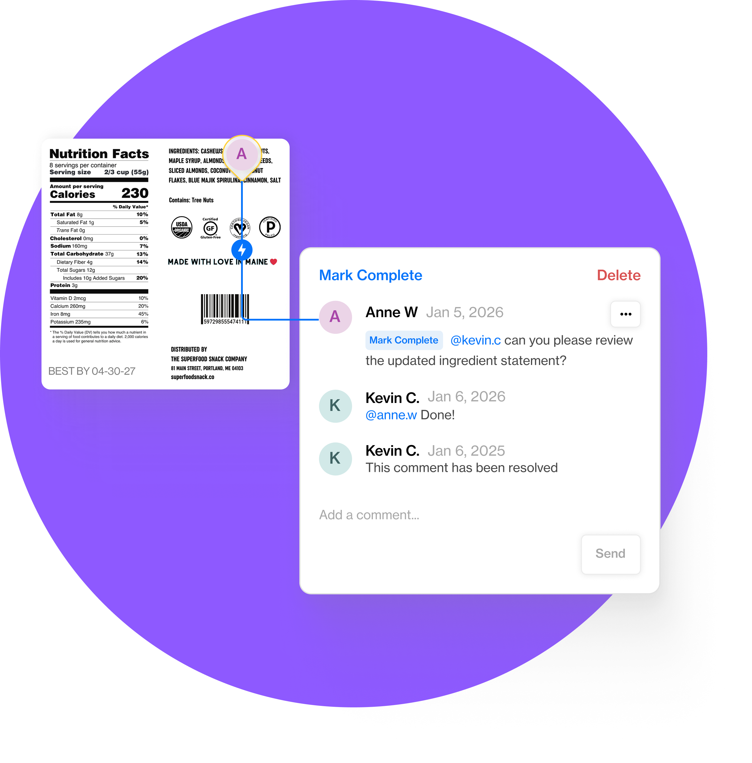 Easily upload and manage ingredient spec sheets, supplier information, product formulas, and more.